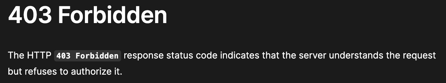 403 에러는 서버가 요청을 이해하였으나, 인가하는 것을 거절했다고 한다. 즉, 인가에 실패한 것이다.