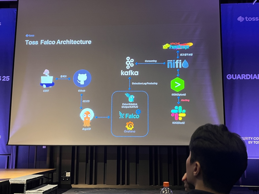 가장 관심 있는 내용은 Kubernetes 기반에서 Falco나 Trivy를 통해서 보안을 강화하는 방법에 대해서 발표한 것이었습니다. Trivy나 istio 기반으로 mTLS를 통해서 쿠버네티스의 보안을 신경 쓰는 것에 대해서는 어느 정도 알고 있었고 관심 있게 살펴보고 있었으나, Falco에 대해서 이렇게 자세하게 발표를 들을 수 있었던 것은 처음이었기 때문입니다. 다음에 시간이 나면 한 번 Falco를 직접 적용해보고자 합니다.