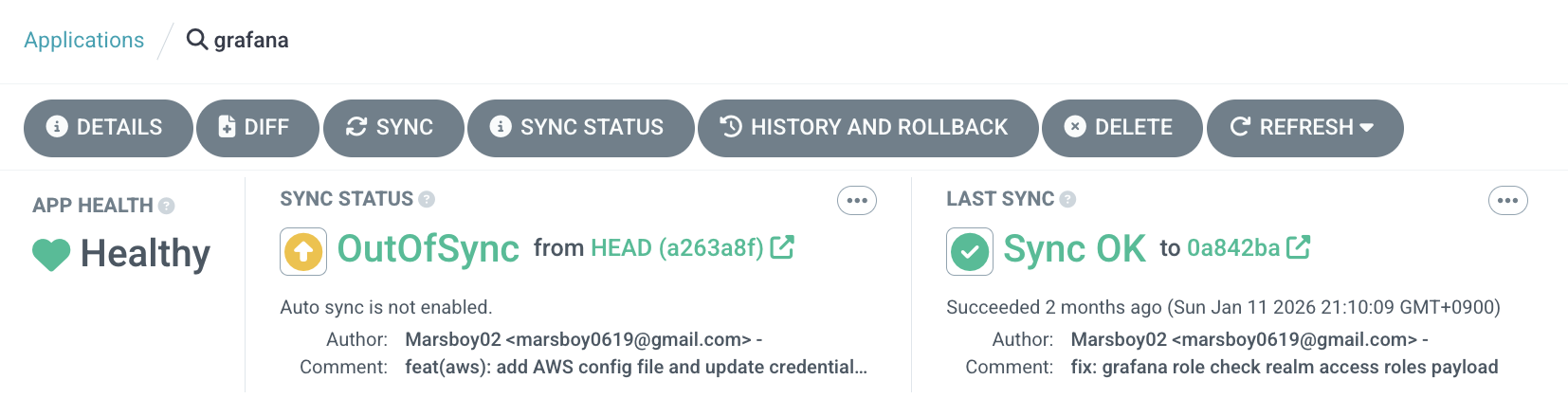 반면 GitOps 기반에서는 Git이 곧 감사 로그가 된다. 커밋 히스토리만 봐도 인프라 변경 이력이 한눈에 읽힌다.