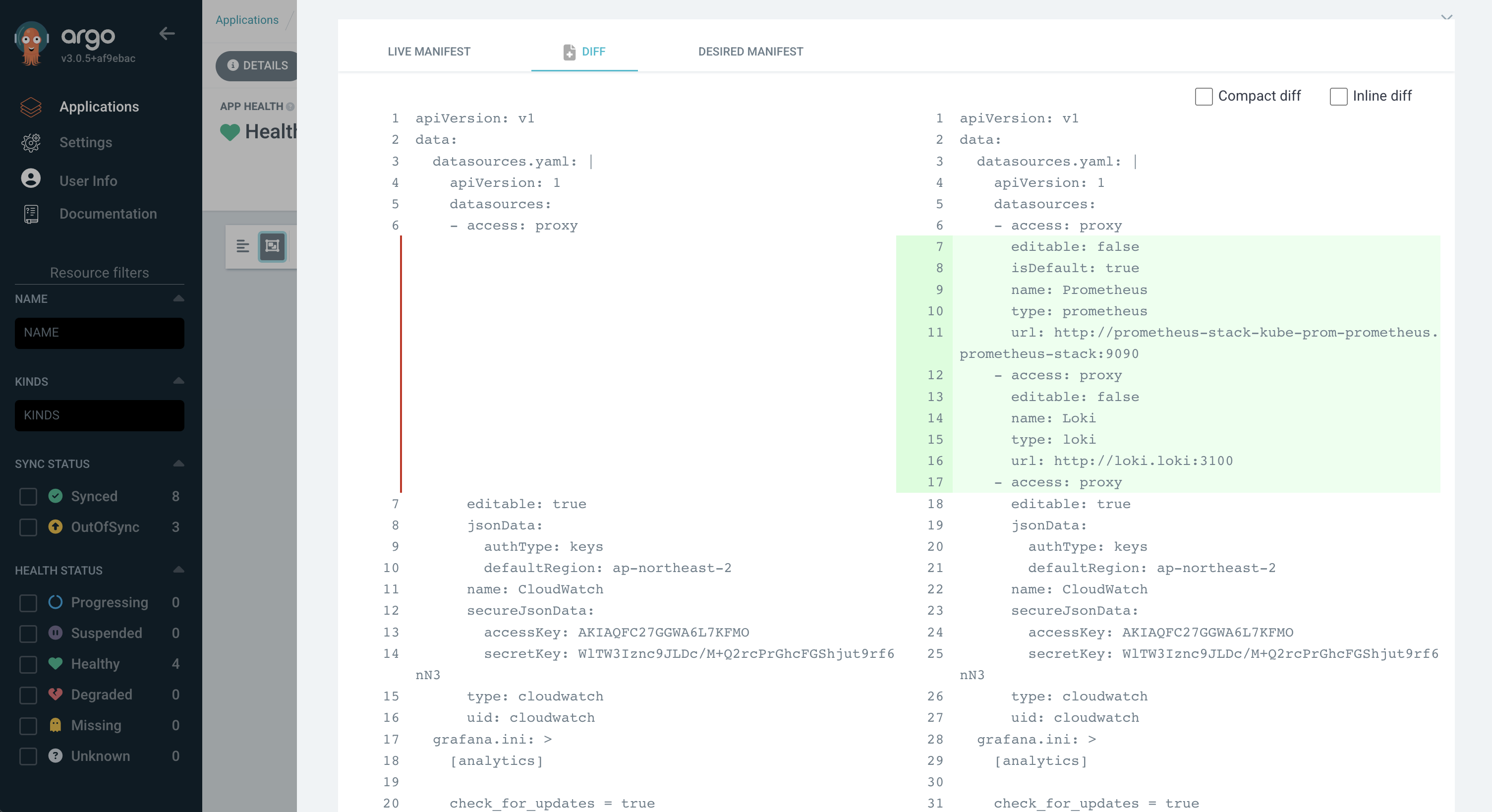 - Continuously Reconciled(지속적 조정): 에이전트가 실제 상태(Live State)와 원하는 상태(Desired State)를 지속적으로 비교하고, 차이가 발생하면 자동으로 교정한다. 누군가 kubectl edit나 AWS Console을 통해 직접 변경해도 ArgoCD나 자동화된 IaC가 다시 원래 상태로 되돌리게 된다.