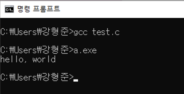 이제 복잡한 과정을 끝내 C 언어를 컴파일할 수 있게 되었다! ( MacOS 사용자라면 복잡한 과정은 아니었을 것이다 ) gcc가 C를 컴파일하는 여러 가지 과정을 통해서 윈도우는 a.exe라는 실행 파일이 생성되고, 맥에서는 a.out이라는 파일이 생성된다. 해당 생성 파일을 실행시키면 C로 작성한 코드를 실행시킬 수 있게 된다.