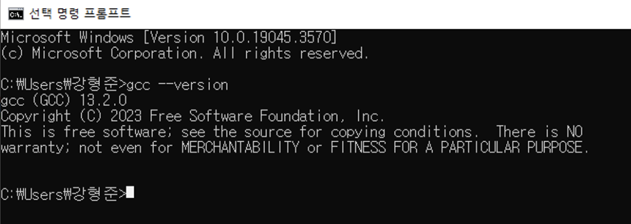 그다음 새로 만들기(N)를 눌러 bin 폴더의 위치인 C:₩Program Files₩w64devkit₩bin를 추가해 준다. 이제 OS는 bin 파일 내에 있는 다양한 명령어를 인식하여 실행시킬 수 있게 된다. 이제 윈도우에서 명령 프롬프트나 파워셸을 열어 gcc 명령어를 입력하면 컴퓨터는 gcc 명령어를 이해할 수 있게 된다.