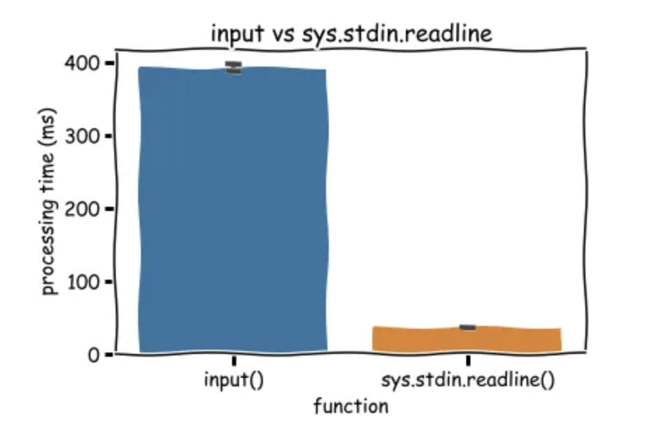 이번에 소개할 내용은 sys모듈에 탑재되어있는 stdin.readline() 메서드이다. 파이썬에서의 input() 함수는 내부적으로 stdin.readline()을 호출한 다음 개행문자인 \n를 제거하는 일을 한다. 따라서 약간의 오버헤드가 발생하기 때문에 시간초과가 발생하는 경우가 있다.