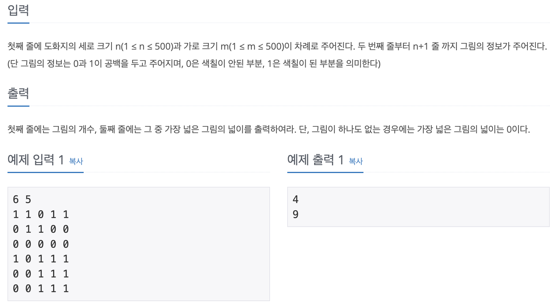 여기서는 n*m 사이즈 데이터를 줄 때, 값이 띄어져서 들어간다. 이 때는 strip()이 아닌 split()를 사용하면 된다.