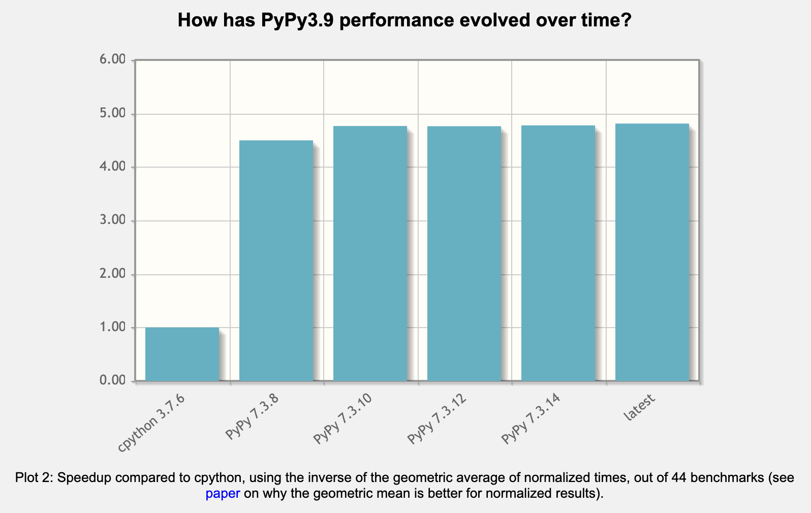 위 막대 그래프는 pypy.org에서 가져온 자료이다. 설명에 따르면 44개의 벤치마크 데이터를 통해서 위와 같은 퍼포먼스를 냈다는 것이다. 그래서 백준 문제를 푸는 도중에 시간 초과나 메모리 초과를 만나게 된다면 python 코드를 python3가 아닌 PyPy3로 제출해 보는 방법도 좋을 것이다.
