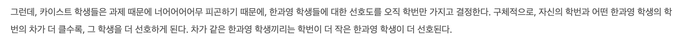 카이스트 학생들의 선호도는 다음과 같이 나와야 한다.