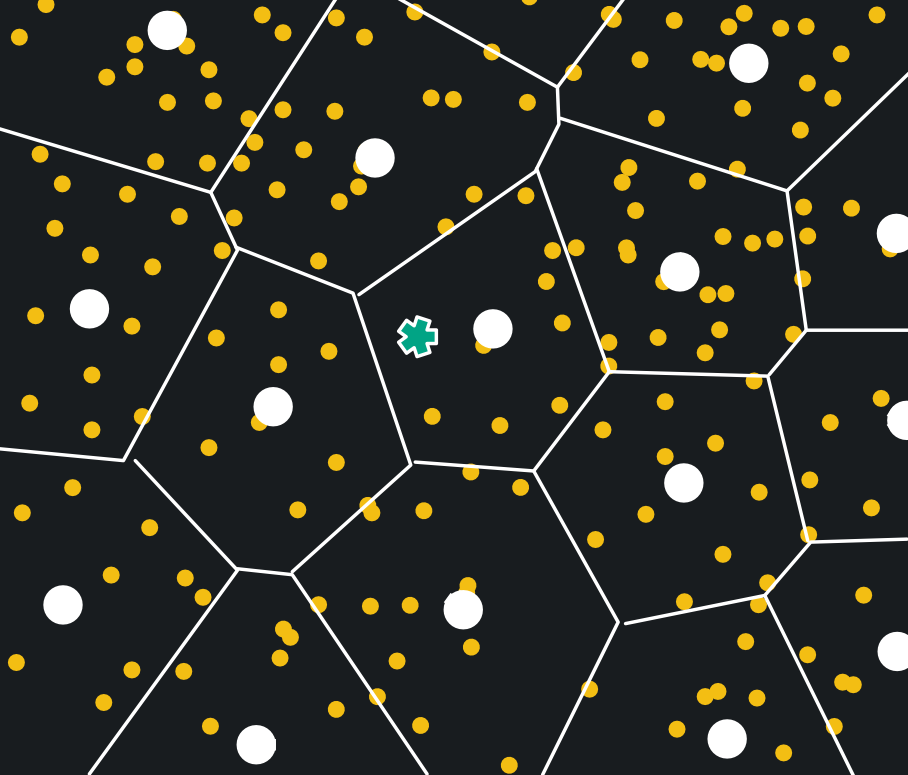 아래에서 프로브 매개변수가 3이면 쿼리 벡터에서 가장 가까운 3개의 보르노이 셀을 가져오는 방법이다.