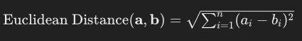 유클리드 거리는 두 벡터 간의 직선 거리를 측정한다. 2차원 평면에서 두 점 사이의 거리와 유사하게 생각할 수 있다.