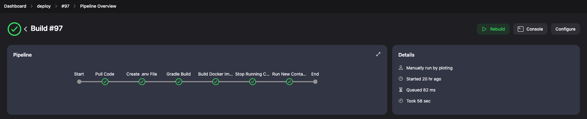 파이프라인이 성공적으로 진행되면 위와 같은 결과를 확인할 수 있다.