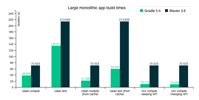 Gradle is up to 100 times faster than Maven. Take a look at case studies and find out more about the performance advantages of Gradle over Maven.