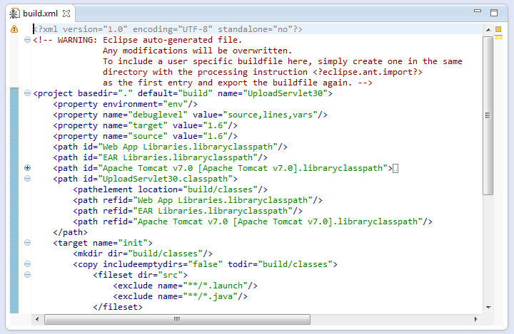 초창기 자바의 2000년대 초반의 빌드 툴은 Ant라고 불리는 빌드 도구였다. 아래와 같이 build.xml을 정의했어야 했다.
