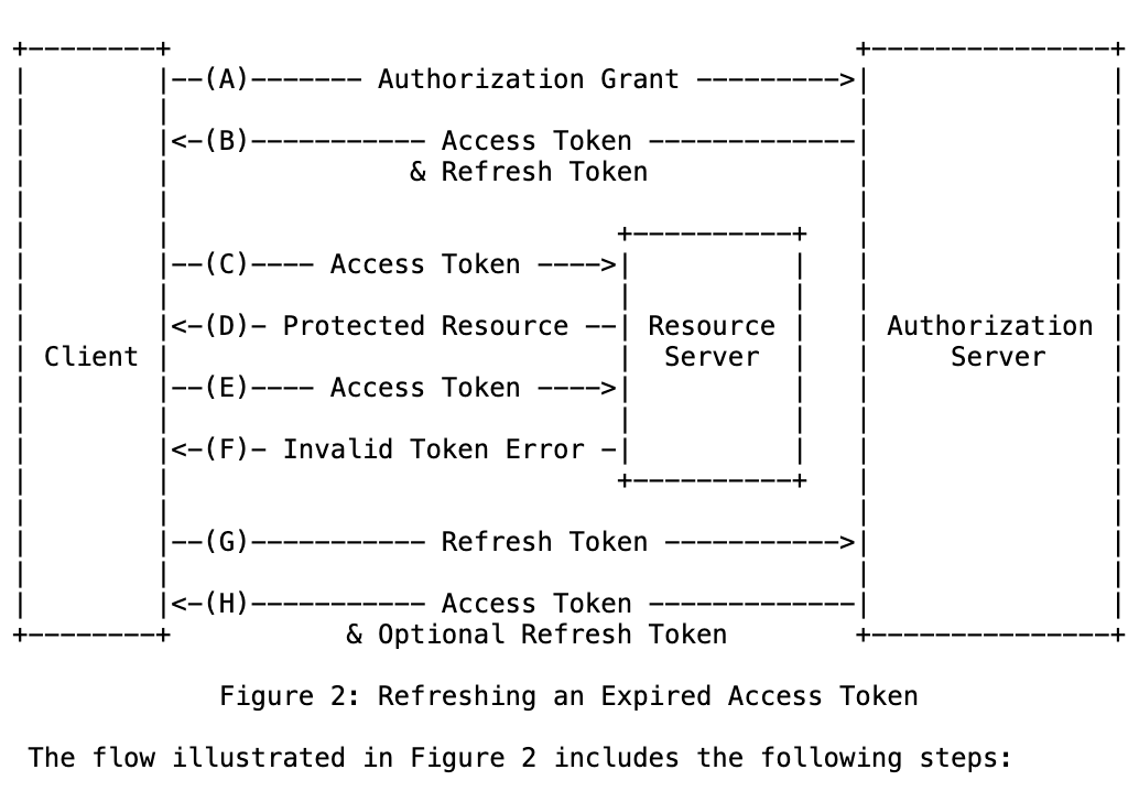 이 중에서 OAuth 2.0에 대해서 다룬 RFC 6749에 대해서 살펴볼 예정이다. [page 9]의 Refresh Token에 대한 설명을 확인해보면 다음과 같은 설명이 나와있다.