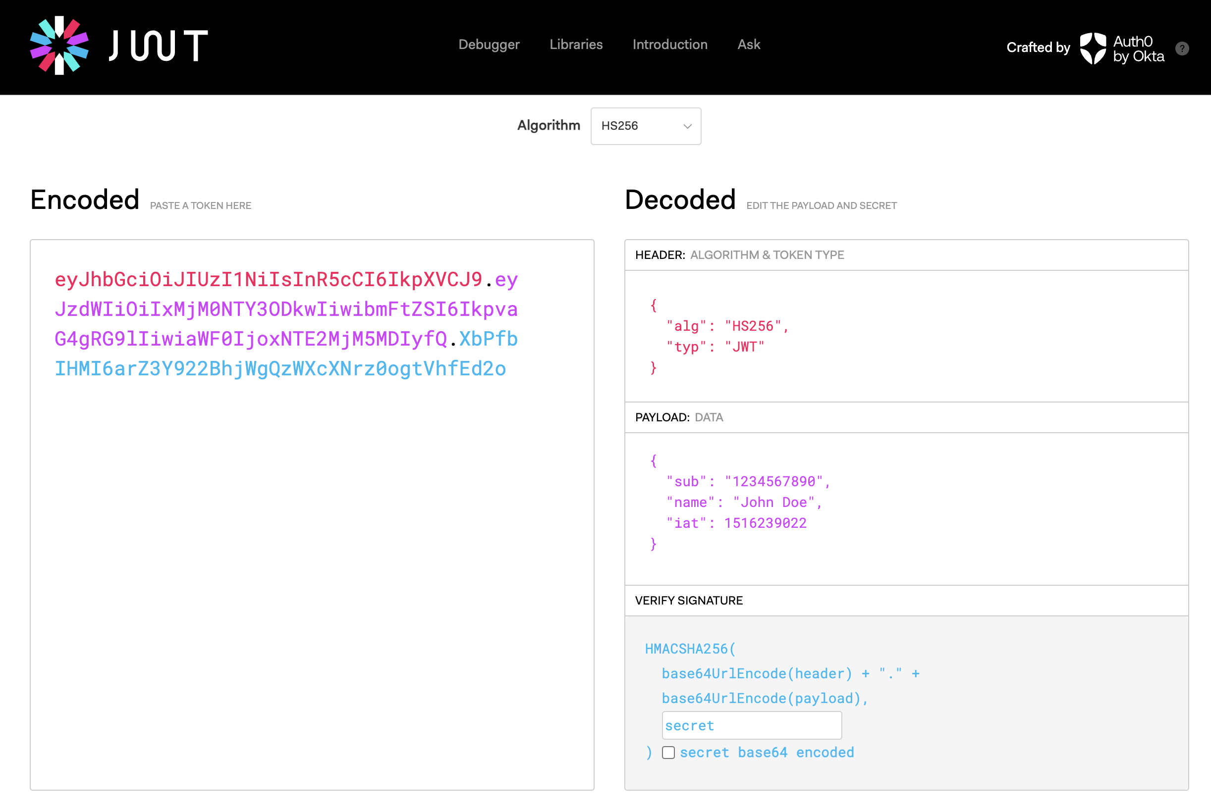 단방향 알고리즘을 쓰기 때문에, 검증하는 방법은 이러한 Payload를 Secret Key를 통해서 SHA256으로 암호화하여, Signiture와 같은 지 아닌 지 비교하여 확인하는 것이다!