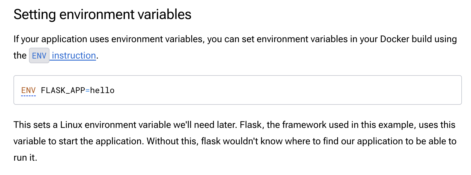 docker docs에서 dockerfile의 ENV에 대한 설명은 위와 같다. application이 환경 변수를 사용할 때, ENV로 설정하는 것인데, 밑에 재미있는 내용이 있다.