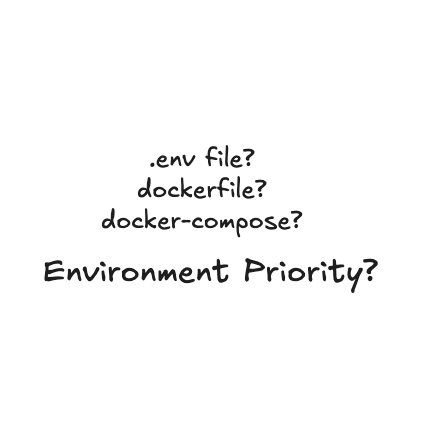 Dockerfile이나 그 외에 도커 이미지 기반의 툴을 사용해 보았으면 경험적으로 알겠지만, 한 문장으로 정리하면 가장 바깥쪽에서 넣어주는 환경 변수가 적용된다는 점이다. 애플리케이션의 .env 파일의 바깥에 Dockerfile 그 바깥에 docker-compose가 있듯이 똑같은 우선순위로 환경 변수가 적용된다.