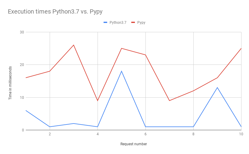 그렇다면 pypy는 어느 위치 정도에 있을까? 위에 따르면 아마 Python과 Javascript 사이에 있을 것이다. 적극적인 JIT를 사용하면서 점점 오른쪽으로 가게 되며, 성능도 좋아진다. 반대로 왼쪽에 있는 인터프리터 언어일수록 쓰기 편하며, 빠르게 개발할 수 있다. node를 통해서 띄운 서버를 --watch 옵션을 걸어서 소스 코드가 바뀔 때마다 띄울 수 있게 만들면, 순식간에 바뀐 코드로 테스트를 할 수 있다.